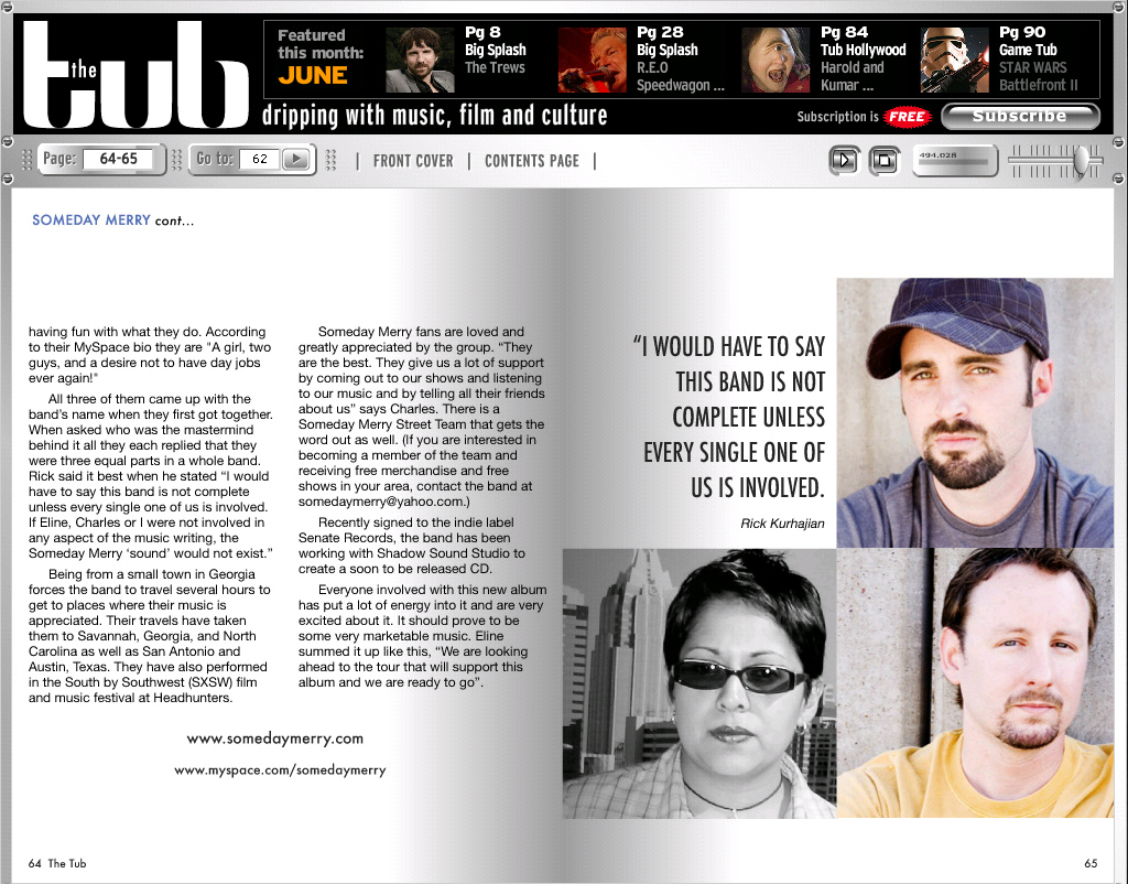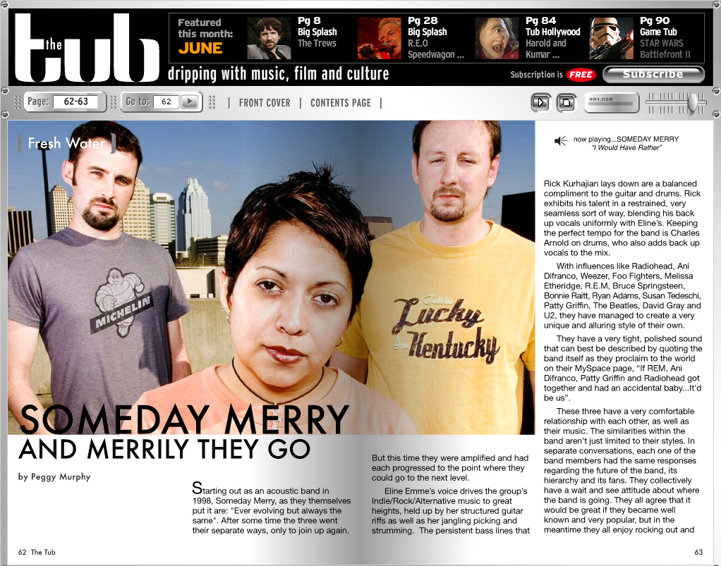Someday Merry’s style captures the essence of true music expression. Check out Tub Magazine's article about Someday Merry: [Page 1&2] [Page 3&4] |